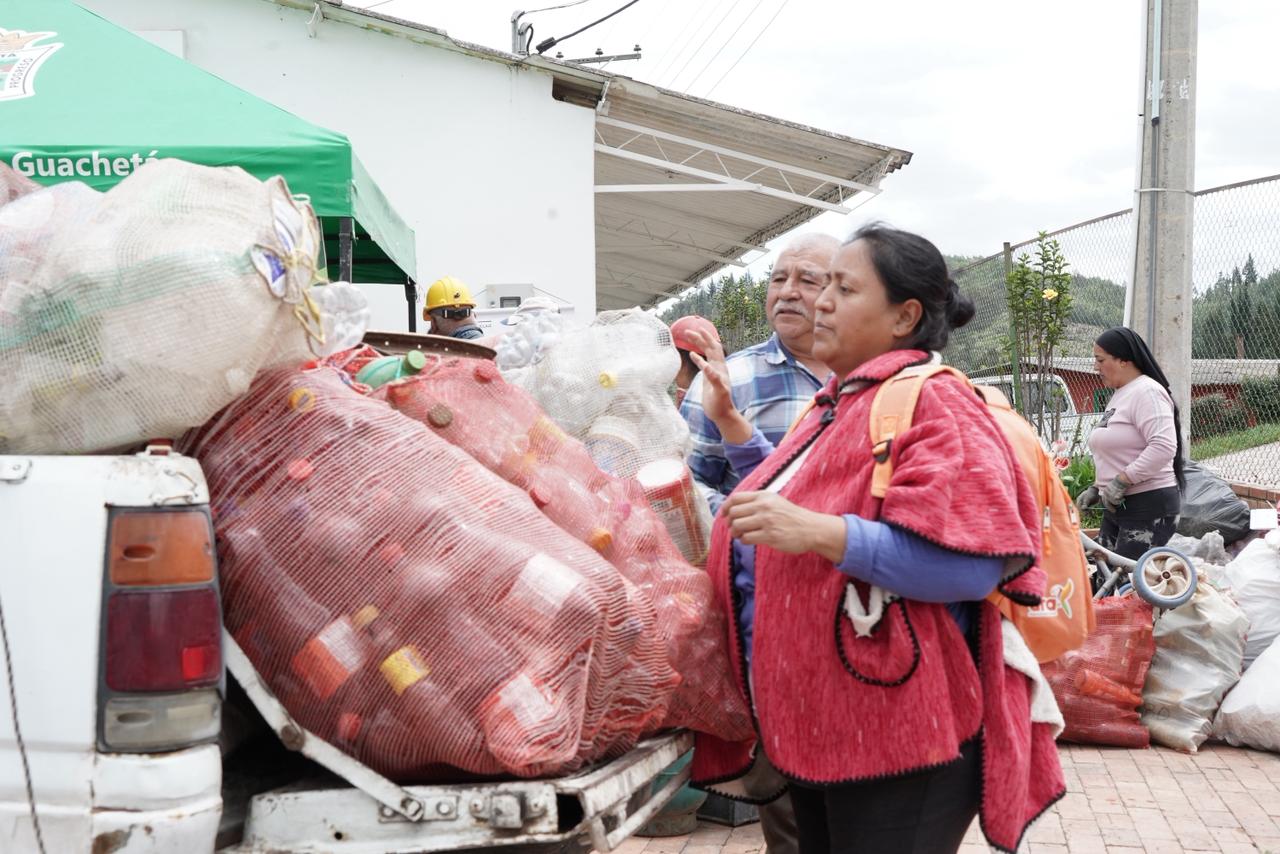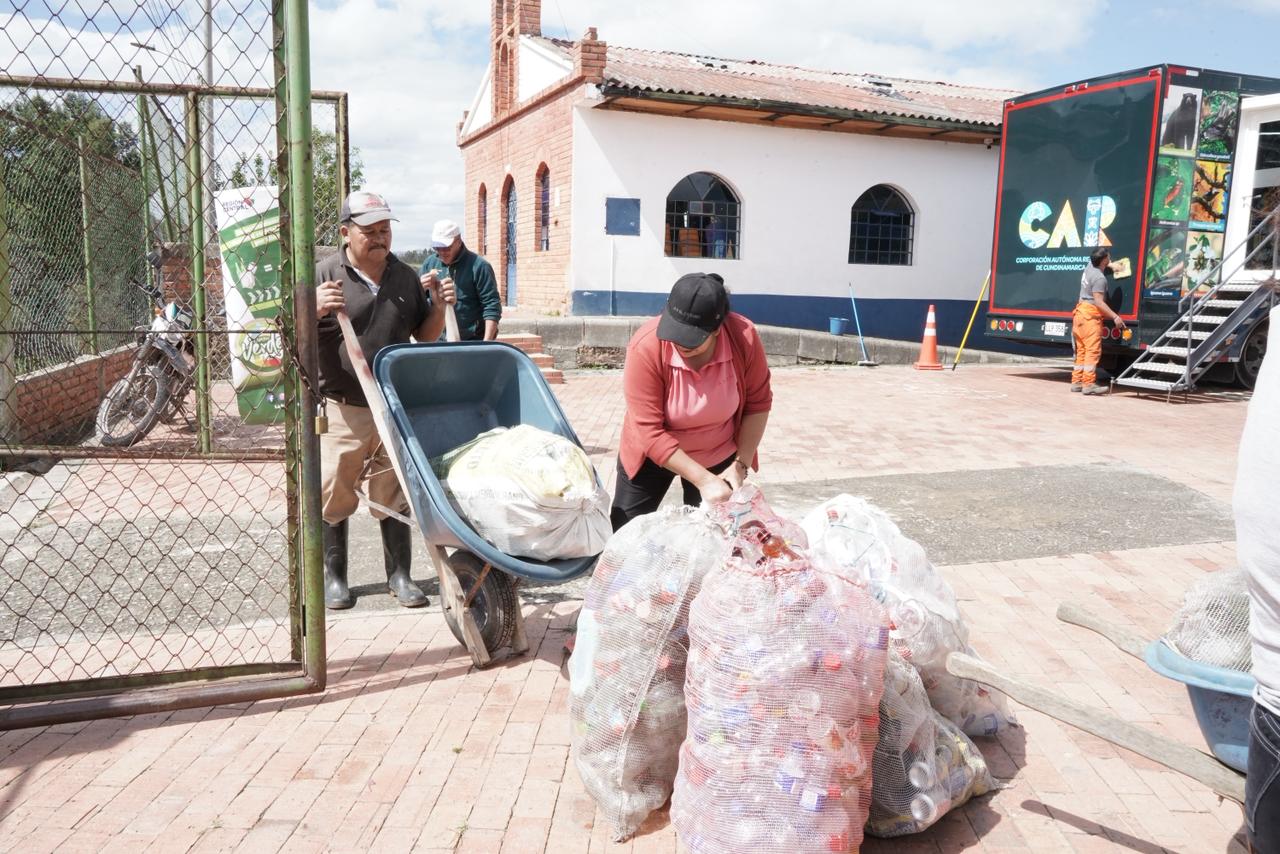 Precisamente, las instituciones educativas del municipio se sumaron activamente a la jornada. En la Institución Educativa Departamental de Guachetá, estudiantes y docentes promovieron campañas de separación en la fuente e intercambiaron útiles escolares por material reciclable.