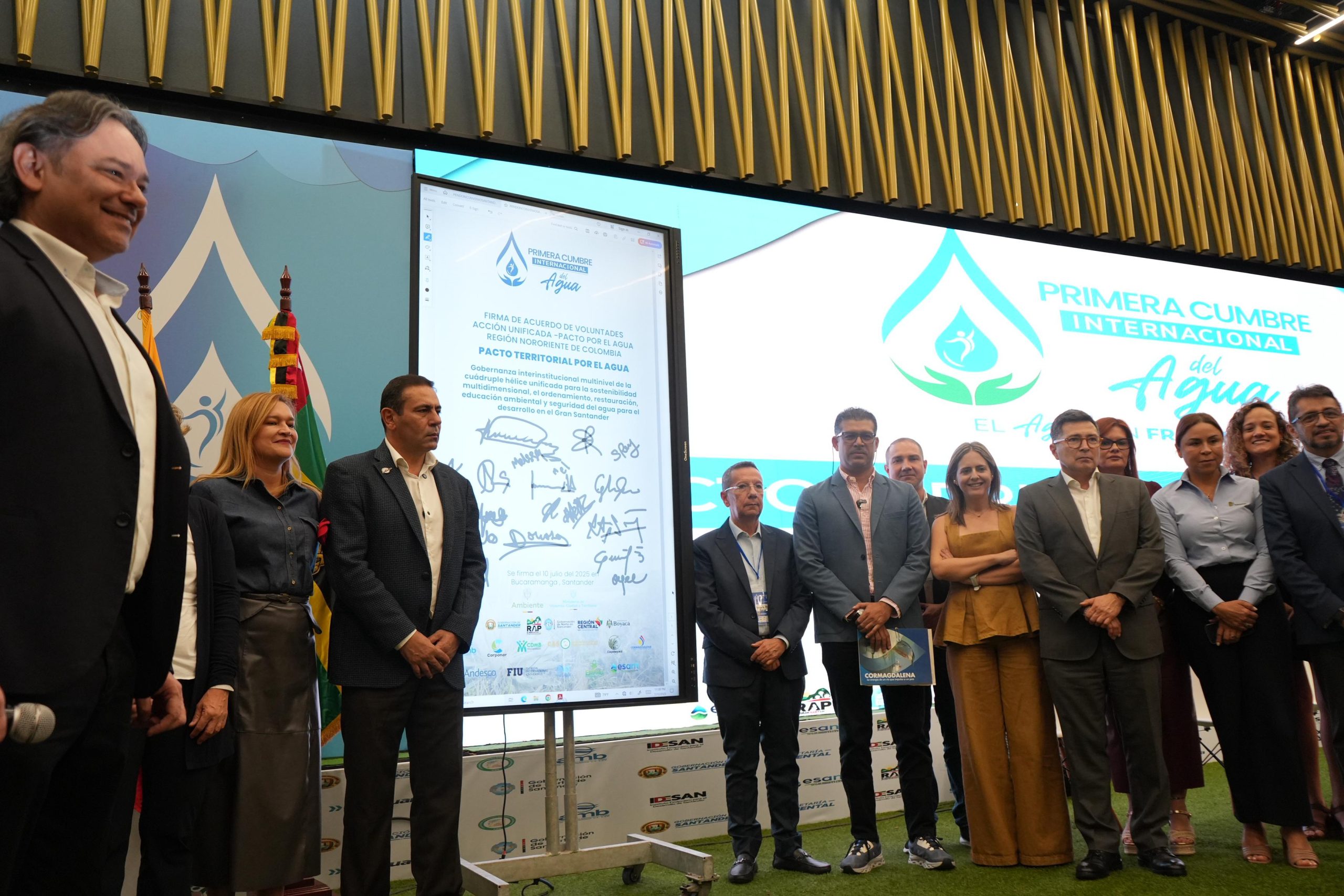 Bucaramanga, 11 de julio de 2025. Con la firma del acuerdo de voluntades ´Acción Unificada: Pacto por el Agua´, la Región Administrativa y de Planeación Especial (RAP-E) Región Central cerró con éxito su participación en la ´Primera Cumbre Internacional del Agua´, un espacio estratégico que reunió a actores institucionales, territoriales y académicos en torno a la planificación hídrica del nororiente colombiano y del país.