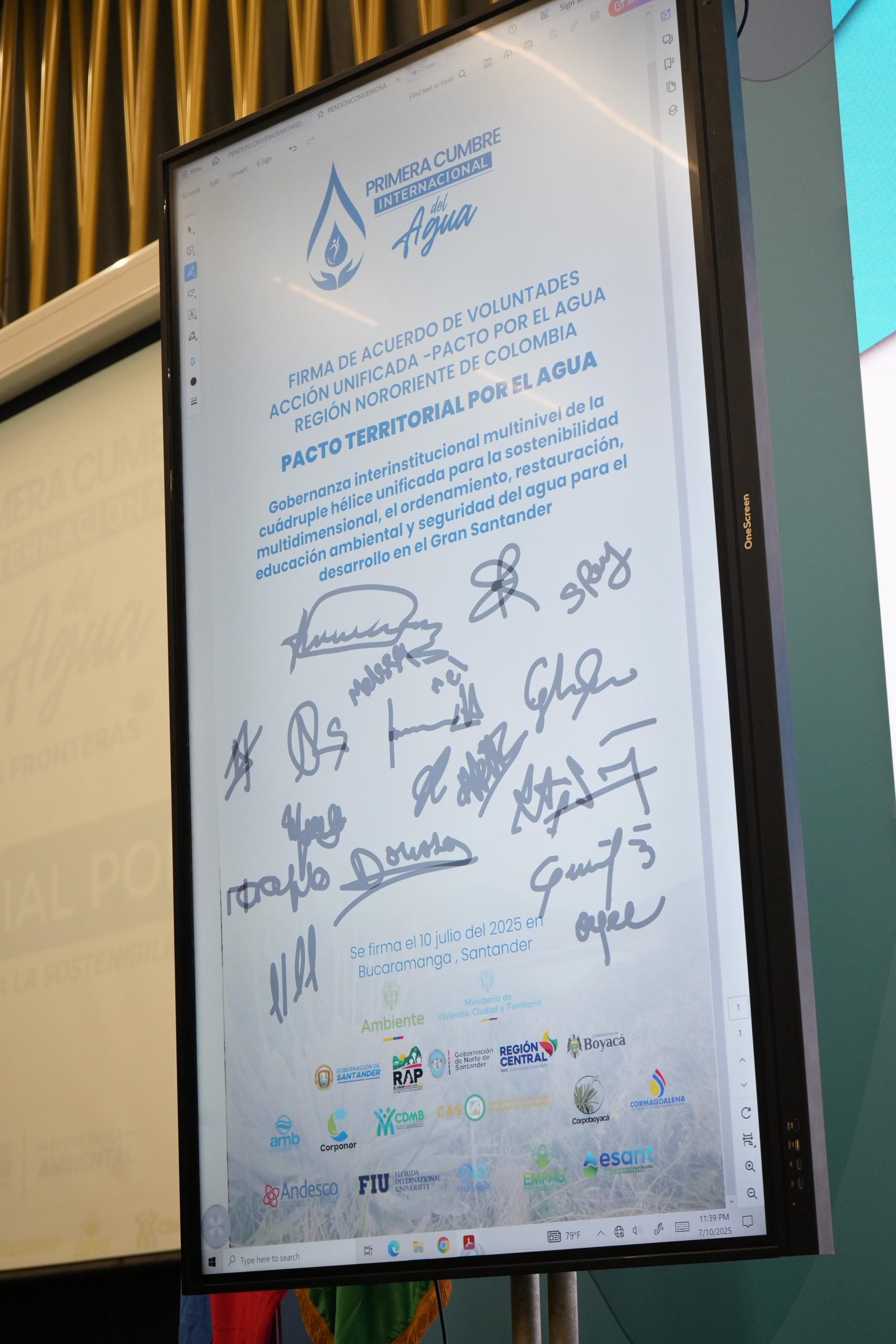 Además de la firma del pacto, la Cumbre incluyó la socialización del modelo de seguridad hídrica de la Región Central, el desarrollo del Panel de Acueductos Comunitarios y el primer encuentro del Comité Interinstitucional de Educación Ambiental (CIDEAS) del Gran Santander, consolidando una visión compartida del agua como eje estructurante del desarrollo sostenible.